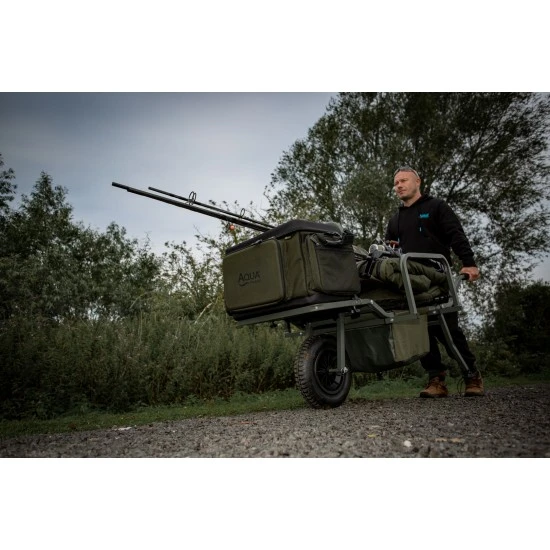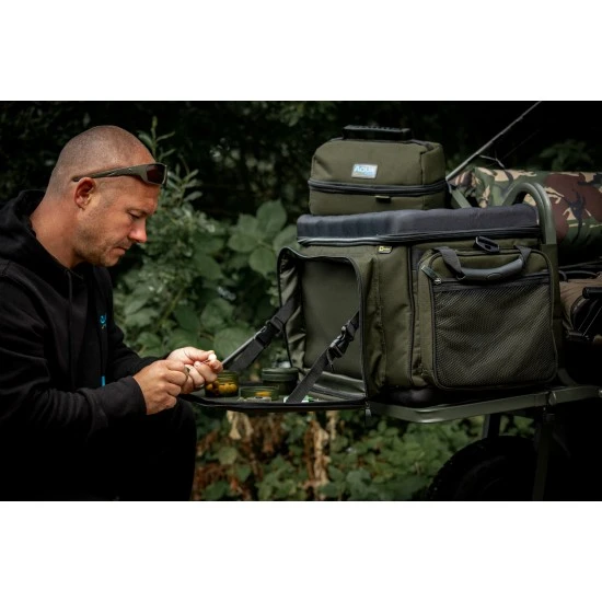 Diseñada para adaptarse fácilmente a la mayoría de las carretillas del mercado actual, la serie Front Barrow Bag Black tiene un panel de montaje ajustable que se conecta fácilmente a la barra delantera de las carretillas para colocarlas de forma segura en su lugar. El diseño único presenta un resistente bolsillo frontal de EVA que se puede abrir para funcionar como una mesa de trabajo mientras la bolsa aún está unida a la carretilla. Este compartimento tiene correas ajustables para soporte adicional para objetos pesados. La tapa y la parte inferior de EVA moldeada resistente brindan la mayor protección al contenido de la bolsa y cuenta con un bolsillo de malla interno completo en la parte posterior para almacenamiento adicional. El compartimento principal tiene una gran capacidad y es perfecto para guardar todo lo necesario para una sesión más larga en el banco. Se colocan varillas de soporte internas en cada esquina para mantener la estructura de la bolsa incluso cuando está vacía. Los dos grandes bolsillos con cremallera en los extremos brindan más espacio de almacenamiento y un fácil acceso a los artículos esenciales. La bolsa es fácil de transportar con asas resistentes para levantar y viene con una correa de hombro ajustable y desmontable cuando sea necesario. Además de los componentes rígidos de EVA, el resto de la bolsa está acolchada, forrada y confeccionada con nuestro tejido superresistente 900D Endura.