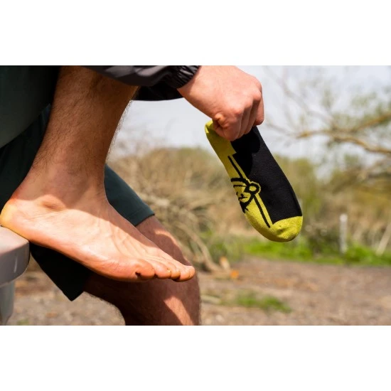 Tienen la marca RidgeMonkey discreta en la suela de los calcetines.