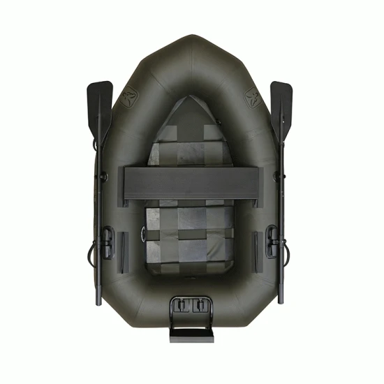 La embarcación más pequeña y ligera de la nueva gama Material de 0,7 mm de grosor disponible en exclusivo Fox Camo o Green Dos cámaras de aire Válvula de alivio de presión segura Ángulo de proa mejorado para una navegación más suave Tamaño interior extra ancho y más largo para mayor comodidad Fondo reforzado para mayor protección Ubicación estratégica asas delanteras mejor equilibrio durante el uso Asiento deslizante exclusivo para preferencias personales Palas de aluminio negro y asiento de aluminio negro liviano Soporte negro extraíble para motor eléctrico/medidor de profundidad Piso de madera contrachapada negra incorporado (para una configuración rápida) Punto de anclaje y tirador de PVC negro Lados reforzados para máxima protección contra el barco Se suministra con bomba de pie, kit de reparación y llave de válvula.