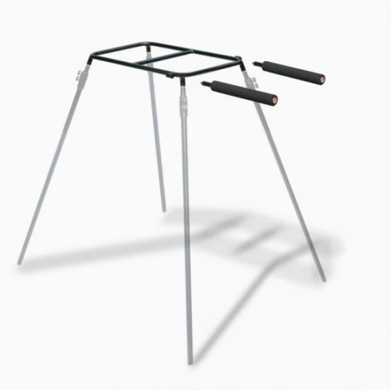 Para usar, simplemente atornille un poste de banco o tormenta en cada una de las cuatro roscas del marco y coloque la estación Spod a la altura que desee. Coloque sus cubos cuadrados de 17 litros en el espacio provisto y la estación Spod estará lista para usar. Agregue el Rod Rest System atornillando los dos brazos al costado del marco y estará listo para alimentar. Use el Rod Rest System metiendo la parte posterior de su caña debajo del brazo trasero y apoyando la parte delantera de su caña en el brazo delantero. Su caña colgará naturalmente en el soporte sostenido por los brazos de EVA para evitar resbalones.