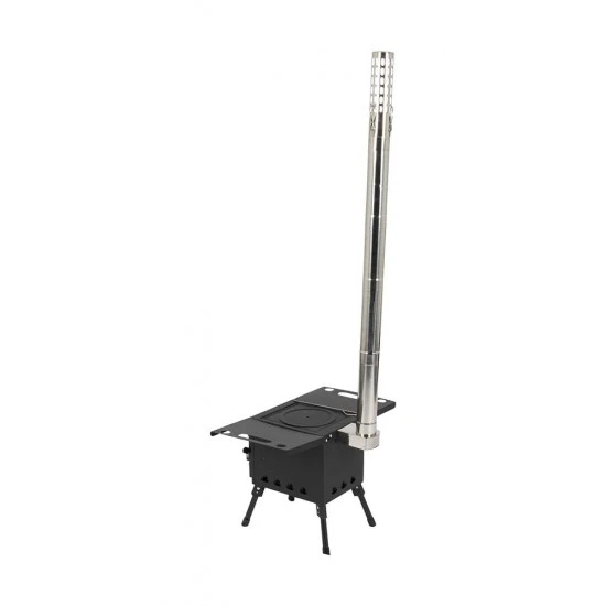 Estufa de leña manejable con una apariencia única de la colección Urban Outdoor. Esta estufa de leña no solo le da a su hogar un aspecto único, sino que también tiene una serie de excelentes beneficios. Por ejemplo, la chimenea divisible tiene un parachispas. Esto evita que salten chispas y, por lo tanto, es muchas veces más seguro que un fuego abierto. La estufa se puede utilizar bajo un toldo con la chimenea exterior. Esto proporciona una maravillosa calefacción bajo un toldo. Además, la estufa de leña está equipada con una vitrocerámica. Esto significa que el agua o la comida también se pueden cocinar en la estufa. El material de la estufa es acero.