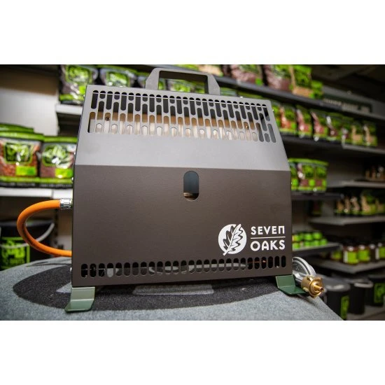 El suministro de gas también se puede utilizar con bombonas de gas de rosca más pequeñas, como la Coleman C500, mediante un regulador de presión separado con rosca de rosca. El calentador se calienta inmediatamente cuando se establece el calor deseado. La estufa de siete robles está hecha de tal manera que no sale luz del calor. Para garantizar la seguridad en una tienda, esta estufa está equipada con un dispositivo de seguridad de CO2. La estufa mide el nivel de oxígeno en todo momento, si es demasiado bajo se apagará inmediatamente. La estufa de siete robles está equipada con un asa resistente, una manguera de 80 cm con acoplamiento rápido, soporte de pie, soporte de pared y un regulador de presión de 50 mbar.