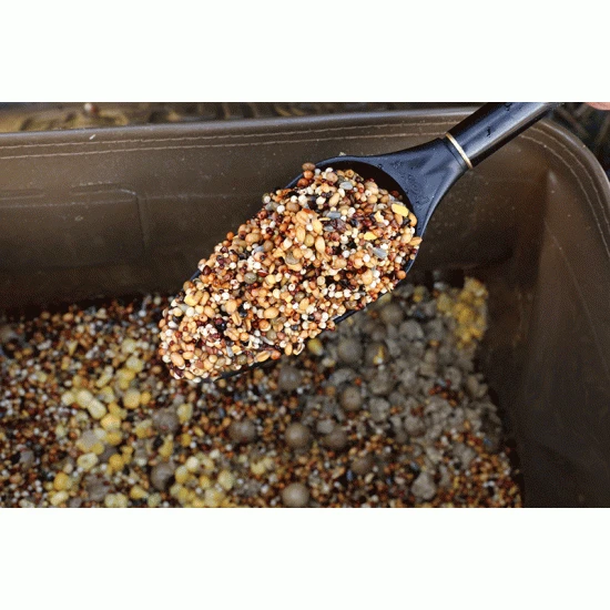 Cuatro modelos de cucharas de cebo ahora disponibles Grande: todoterreno perfecto para muchos cebos como boilies y gránulos Mini: ideal para llenar Impact Spods y Spombs, botes de cebo, mezclar ingredientes y alimentación controlada de pequeñas cantidades de Boilie: como su nombre indica perfecto para la alimentación de boilies Partículas: incluye orificios para la fuga de líquido, lo que la hace perfecta para la alimentación de partículas Diseño moldeado superfuerte y ligero Incluye mango de aluminio estriado atornillable con cordón de mano.