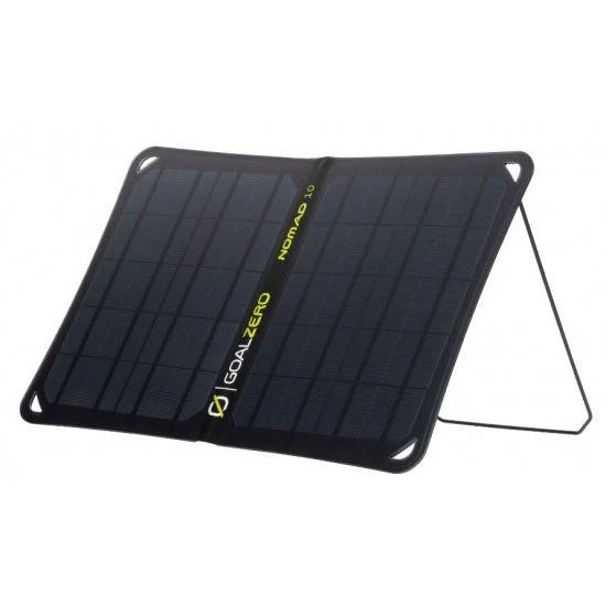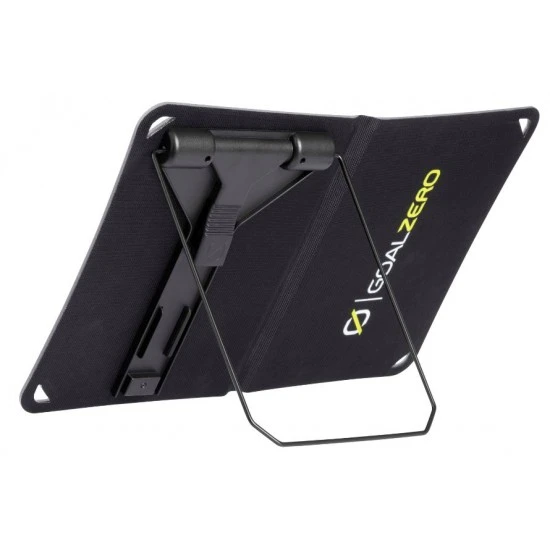 Diseñado para una carga solar más fluida, Nomad 10 tiene una base Goal Zero Flip incorporada y un soporte ajustable que se ajusta a presión y se bloquea en su lugar para una mayor estabilidad.