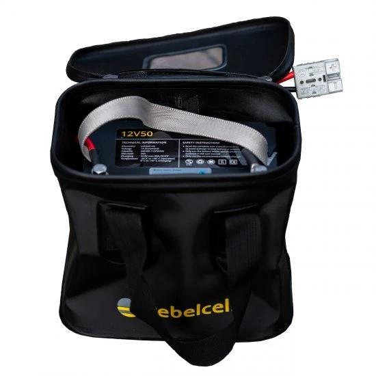 Maletín de transporte de batería Rebelcell fabricado en EVA y equipado con cremalleras resistentes y asas fuertes, para usar con baterías de iones de litio 12V50 y 12V70 AV.