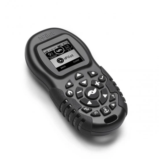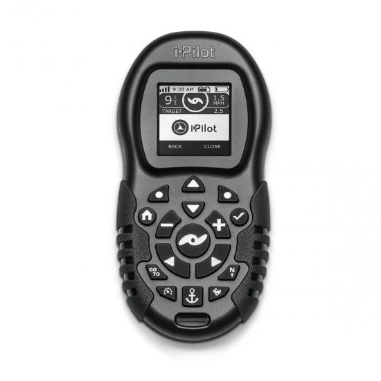 El sistema GPS i-Pilot se puede combinar con múltiples controles remotos inalámbricos. Agregue controles remotos adicionales a su configuración para una mayor flexibilidad. Compacto y resistente al agua, este nuevo control remoto tiene una pantalla LCD más grande, botones ergonómicos y un compartimiento de batería de fácil acceso. Proporciona información instantánea sobre las funciones activas, la velocidad, el estado de activación/desactivación de la hélice, la energía de la batería y la intensidad de la señal del GPS. Operación Almacenar/implementar y recortar automáticamente con modelos Ulterra.