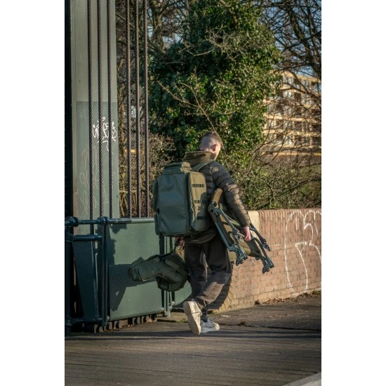 - 2 bolsillos de malla con cremallera en la mesa acanalada para guardar los aparejos.