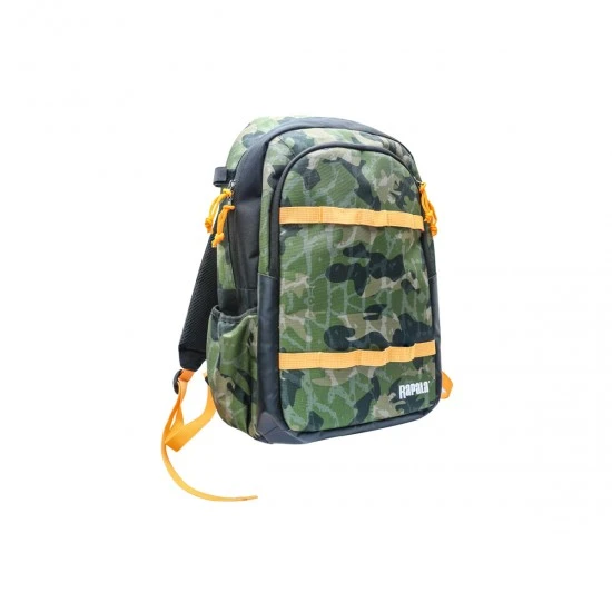 Rapala Jungle Backpack es una bolsa resistente y es adecuada para cualquier pescador u otras actividades al aire libre. La bolsa tiene 1 compartimento principal y un bolsillo frontal con cremallera para guardar accesorios. La bolsa tiene correas de hombro completamente acolchadas. El revestimiento de vinilo hace que la bolsa sea más duradera e impermeable.