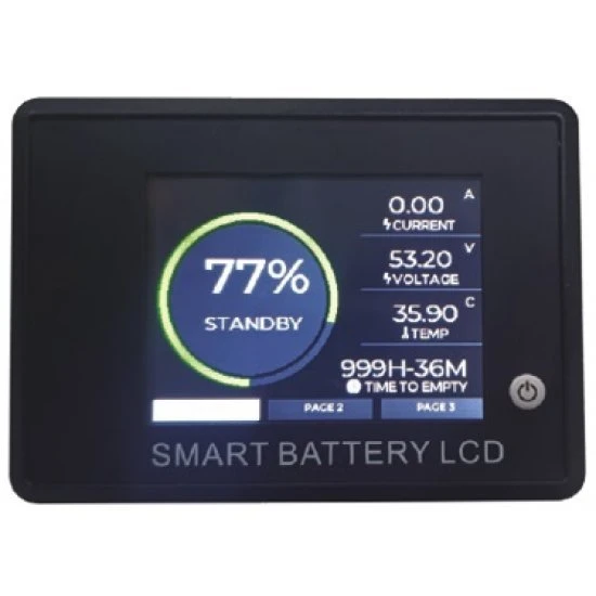 La pantalla del monitor LCD JARO es resistente al agua en la parte delantera y tiene una pantalla táctil para que pueda acceder a las distintas páginas con los dedos y encender y apagar la carga y descarga. Este monitor se puede conectar al Pack de Baterías Jarocells 48V 105Ah con un cable de 5 hilos. Se incluye un cable de 50 cm de serie.