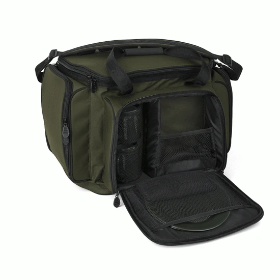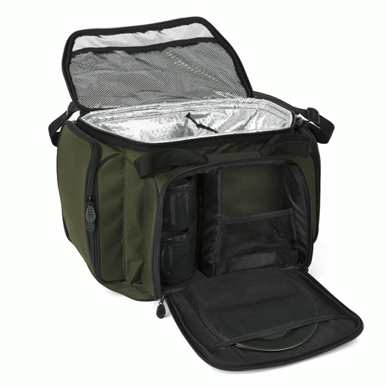 Nuevo material de poliéster tratado de 400 denier, resistente y resistente al agua. Cremalleras dobles robustas de 10 mm que garantizan una fiabilidad total. Compartimento principal con forro térmico central y fácil de limpiar con un divisor 60:40 para almacenamiento compartimentado. Dos grandes bolsillos externos acolchados con cremalleras dobles para un quemador de gas, alimentos enlatados. y accesorios El bolsillo delantero grande forma un almacenamiento desplegable con: 2 cuchillos, tenedores, cucharas y cucharillas de acero inoxidable, 2 platos verdes redondos, 2 tazas verdes, 1 sacacorchos, 1 tarro grande con tapa de rosca, 2 tarros pequeños frascos con tapa de rosca, 1 toalla de microforro polar Almacenamiento interno separado para cosas como aceite, ketchup y salsas, detergente líquido, etc. Correa ajustable y extraíble para el hombro Material exterior 100 % poliéster, relleno 100 % polietileno, forro 100 % poliéster Dimensiones: 55cm x 41cm x 38cm.
