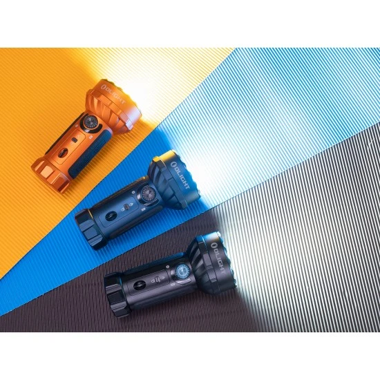 El Marauder Mini es el foco multicolor compacto pero potente de Olight. Puede cambiar entre todos los modos en cualquier momento y el brillo sigue siendo el mismo. El interruptor giratorio (atenuador) asegura un ajuste suave entre los niveles de brillo, la lámpara indica mediante una señal de vibración cuando se ha seleccionado el ajuste más alto o más bajo. Alrededor del dial hay indicadores para leer el brillo, el nivel de batería y el color en tiempo real. Sus superficies de agarre de goma brindan agarre adicional en todas las condiciones climáticas y en la funda incluida, siempre puede llevar el Marauder Mini con usted. La carga es sencilla con el cable de carga magnético universal de Olight, que indica cuando la lámpara está llena. La parte posterior magnética también se puede utilizar para colgar la lámpara.