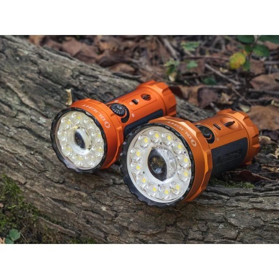 El Marauder Mini es el foco multicolor compacto pero potente de Olight. Puede cambiar entre todos los modos en cualquier momento y el brillo sigue siendo el mismo. El interruptor giratorio (atenuador) asegura un ajuste suave entre los niveles de brillo, la lámpara indica mediante una señal de vibración cuando se ha seleccionado el ajuste más alto o más bajo. Alrededor del dial hay indicadores para leer el brillo, el nivel de batería y el color en tiempo real. Sus superficies de agarre de goma brindan agarre adicional en todas las condiciones climáticas y en la funda incluida, siempre puede llevar el Marauder Mini con usted. La carga es sencilla con el cable de carga magnético universal de Olight, que indica cuando la lámpara está llena. La parte posterior magnética también se puede utilizar para colgar la lámpara.
