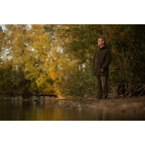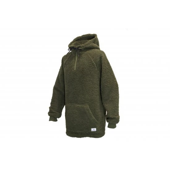 El forro polar incluye una capucha de doble capa, un cuello alto y una solapa estúpida que protege la media cremallera contra las corrientes de aire. Las mangas tienen elástico y un bolsillo canguro en la parte delantera del forro polar para mantener las manos calientes.