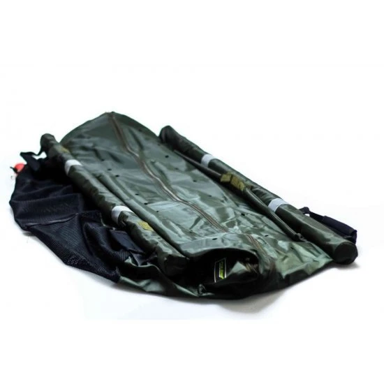 Nuevo en Pro Line el cabestrillo flotante Xtreme. Esta eslinga de retención está equipada con un paño especial de «malla» suave, que proporciona la protección perfecta para los peces. Los flotadores permiten que el pez se cuelgue de forma segura en la eslinga de retención durante un corto período de tiempo. Esto le da la oportunidad de preparar su material fotográfico y de película sin que los peces sufran como resultado. El cabestrillo flotante Pro Line Xtreme está equipado con reflectores y un mini marcador para que este cabestrillo también sea claramente visible en la oscuridad. Gracias al práctico bolsillo lateral, el cable, incluido el anillo de acero inoxidable y el tornillo, se puede guardar fácilmente. El Xtreme Floating Weightsling se puede atornillar fácilmente en un bankstick por medio del tornillo. Dos barras separadoras ajustables están unidas en la parte superior, de modo que cada tamaño de carpa tenga suficiente espacio en esta eslinga de retención.