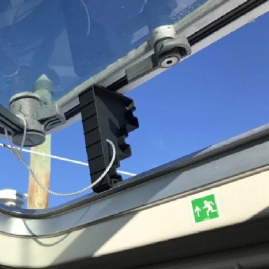 Debido a que las bisagras de fricción de las escotillas de escape no siempre funcionan, Hatch Wedge nació de la frustración. Después de muchos intentos de encontrar el objeto perfecto para sujetar la escotilla a diferentes alturas, surgió la idea de diseñar una cuña de escotilla con múltiples posiciones. Hatch Wedge es una solución asequible perfecta para muchos propietarios de embarcaciones. Simple, pero efectivo. El patrón de nervaduras y huecos evitará que se deslice fuera de la mayoría de las marcas de contraventanas cuando esté en su lugar. 4 alturas diferentes: 25 – 50 – 75 y 125 mm. Al mover la cuña de escotilla, el ajuste de altura deseado es muy simple. Se puede montar fácilmente una línea de bloqueo en la cuña de escotilla. Adecuado para la mayoría de las escotillas, incluidas Lewmar, Goiot, Moonlight, Vetus, Bomar, Gebo y Maxwell. Fabricado en plástico reforzado con poliéster resistente a los rayos UV.