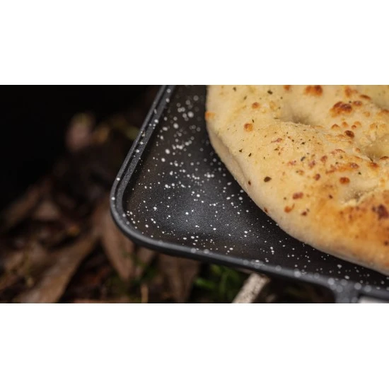 RidgeMonkey Classic Sandwich Toaster Granite Edition cuenta con asas fijas frías al tacto, bisagras remachadas y un juego completo de utensilios que caben dentro de la tostadora para un fácil almacenamiento. La forma cuadrada también significa que se desperdicia menos espacio de almacenamiento que con los utensilios de cocina circulares tradicionales. A pesar del nombre, la tostadora clásica para sándwiches no es solo para sándwiches, piense en sándwiches de pita, wraps u omelettes también, y estos son solo algunos para dejar volar sus ideas creativas, las posibilidades son infinitas. Nuestro nuevo revestimiento estilo granito hace que nuestras sartenes sean más fuertes, más duraderas y ofrece propiedades antiadherentes mejoradas, lo que lleva los utensilios de cocina compactos a un nivel completamente nuevo.