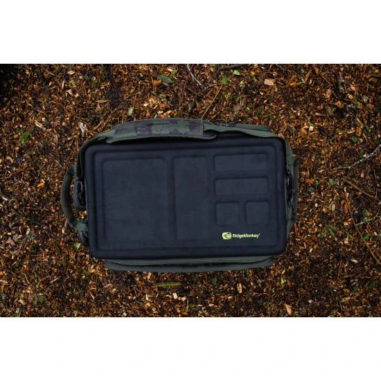 La tapa de EVA moldeada crea una excelente estación de trabajo y se puede usar como una mesa resistente. Hay dos bolsillos interiores de malla con cremallera en la tapa y uno en cada extremo del compartimento interior principal.