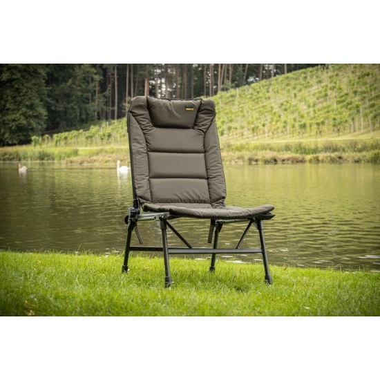 Cómodo sillón de sesión con respaldo regulable en múltiples posiciones hasta un ángulo de no menos de 180 grados. Colchón recubierto de PVC 600D totalmente forrado en un sutil verde oliva y equipado con el exclusivo soporte lumbar de Solar donde el colchón se incorpora al marco. Las cuatro patas son ajustables y están equipadas con un mecanismo de bloqueo, doblar las patas al mover la silla también es cosa del pasado. El marco está equipado con correas de velcro para asegurar las piernas durante el transporte.