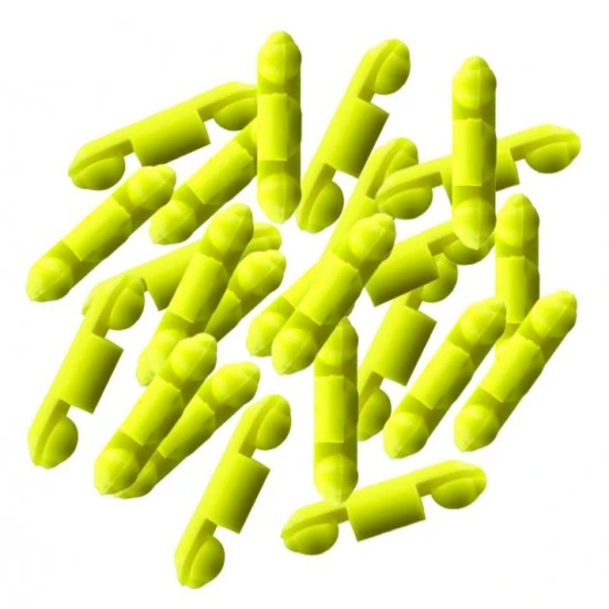 Cuentas de parada de nailon moldeadas para la parada automática y la localización de los lanzamientos de línea. Contiene 24 por paquete. Disponible en todo negro o amarillo.
