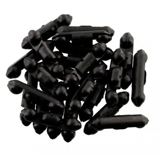 Cuentas de parada de nailon moldeadas para la parada automática y la localización de los lanzamientos de línea. Contiene 24 por paquete. Disponible en todo negro o amarillo.