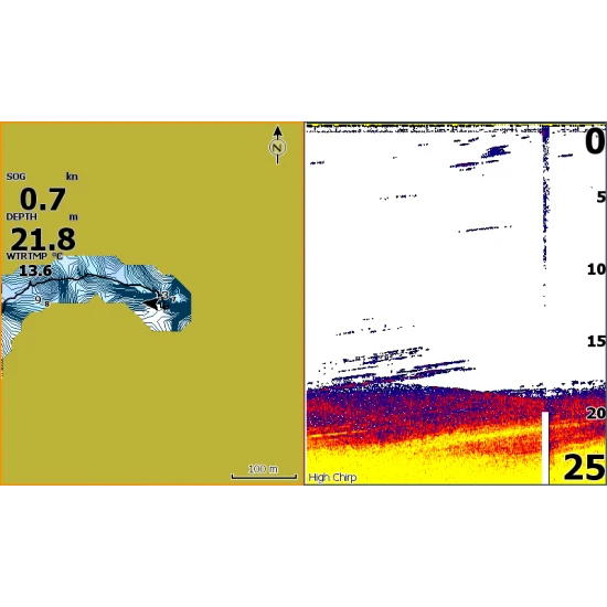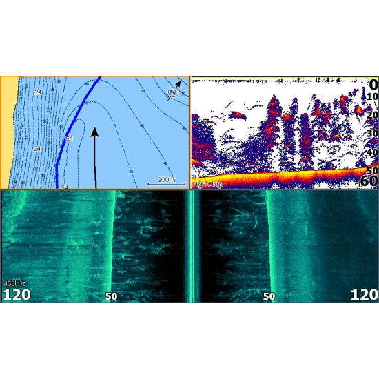 ¿Qué hace que este medidor de profundidad sea tan genial y por qué debería elegir el transductor Tripleshot de 7 pulgadas? El gancho revelador está disponible en 3 tamaños, 5, 7 y 9 pulgadas. En las 2 variantes más grandes (7 y 9) tiene la opción de conectar un transductor TripleShot, que se incluye con este conjunto como estándar . El transductor TripleShot es unas decenas de euros más caro que el transductor normal, pero es absolutamente imprescindible porque también tiene imágenes SideScan además de Sonar y DownScan, que le permite ver hasta 120 m a la izquierda y a la derecha del transductor. Ideal para mapear rápidamente un agua. Además de las imágenes nítidas, este indicador de profundidad también tiene una función de mapeo, que es única para un indicador de profundidad en este rango de precios y le brindará muchos peces adicionales.