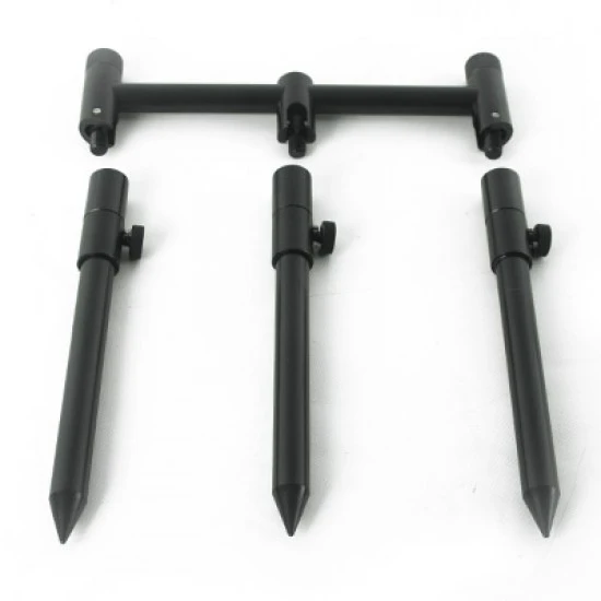 Los Xtractor Tri-Pods brindan una solución rápida y estable que es perfecta para los pescadores en movimiento y que pescan en diferentes bancos. El trípode, que consta de una barra de zumbador con bisagras y tres pértiga ajustables en longitud, se instala rápidamente desplegando las dos pértiga laterales y bloqueándolas en su lugar. Una vez que se coloca la pértiga central, el trípode se puede inclinar o ajustar para la configuración ideal. La barra de zumbido cuenta con collares de bloqueo para una alineación perfecta de la alarma y también puede usar el trípode como una configuración de barra de zumbido tradicional quitando las patas exteriores.